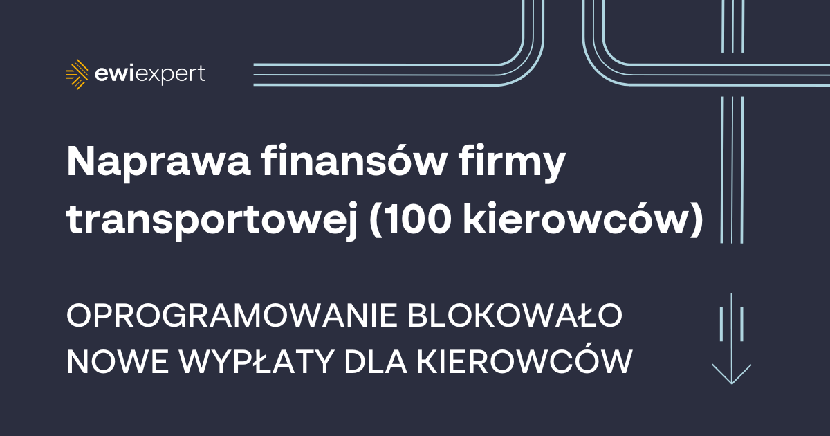 Firma transportowa z poważnymi problemami finansowymi potrzebowała wdrożenia nowego modelu wynagradzania kierowców w ramach procesu restrukturyzacji. Ograniczenia narzucane przez obecny program komputerowy do rozliczeń kierowców hamują cały proces, przez co pracownicy działu HR oraz cały Zarząd firmy zdecydowali się na analizę całej sytuacji w naszej firmie.