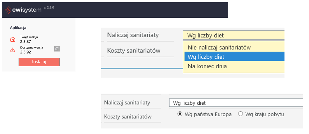Opcja 2 – obliczanie sanitariatów proporcjonalnie do liczby diet wirtualnych. Jeśli z rozliczenia miesiąca wychodzi np. 18 i 1/3 diet, to analogicznie obliczamy wartość 18 i 1/3 stawki za sanitariaty.