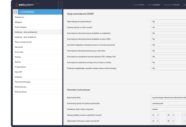 | Początek i koniec delegacji nanoszone automatycznie | Nie | Tak |