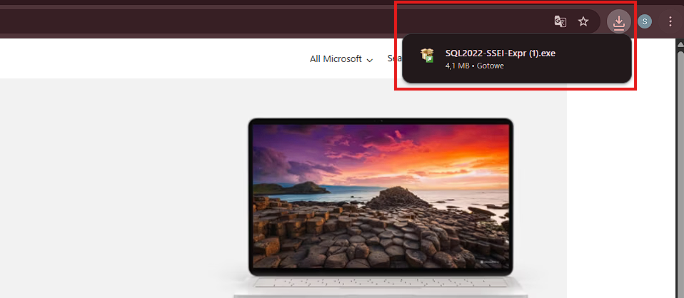 Pobieranie plików instalacyjnych ze strony microsoftu