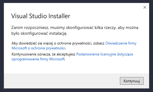 Pierwszy komunikat poinformuje Cię o konieczności sprawdzenia parametrów systemu aby rozpocząć instalacje. Wybierając „kontynuuj” zgadzasz się również na postanowienia licencyjne dotyczące tego oprogramowania. Po przeczytaniu i akceptacji przejdź do następnego okna klikając „kontynuuj”