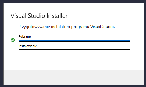 Teraz kreator pobierze sprawdzi i pobierze brakujące pliki, a następnie je zainstaluje. Po zakończeniu procesu otworzy się okno z wyborem plików instalacyjnych „studia”.